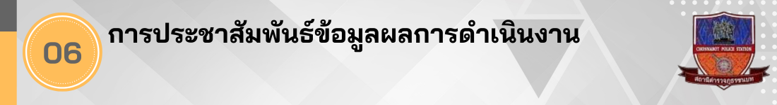 – .ให้สถานีตำรวจนำช่องทางการเปิดเผยข้อมูลสาธารณะ (OIT) เปิดเผย ณ จุดให้บริการ และพัฒนาการให้บริการเพื่อสร้างความรวดเร็วและความสะดวกให้แก่ประชาชน ก่อนทำการประเมินแบบวัดการรับรู้