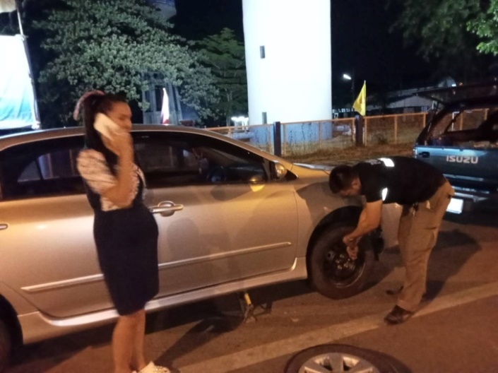 ช่วยเหลือประชาชนBy admincpps / 15 เมษายน 2025 วันที่ 22 มี.ค.2568 เวลา 19.00 น. ภายใต้การอำนวยการของ พ.ต.อ.พัฒนพงษ์ ปัดสำราญ ผกก.สภ.ชนบท ได้รับแจ้งเหตุรถยนต์เก๋งยางรั่วบริเวณหน้า สนง.การประปาส่วนภูมิภาค สาขาชนบท โดย ร.ต.ท.คำรณ ดีมา รอง สว.(ป.)ฯ ร้อยเวร 2-0 พร้อมชุดสายตรวจฯ จึงเข้าช่วยเหลือประชาชนตามร้องขอ ทำการเปลี่ยนยางอะไหล่ใช้ชั่วคราว และเดินทางต่อไปได้